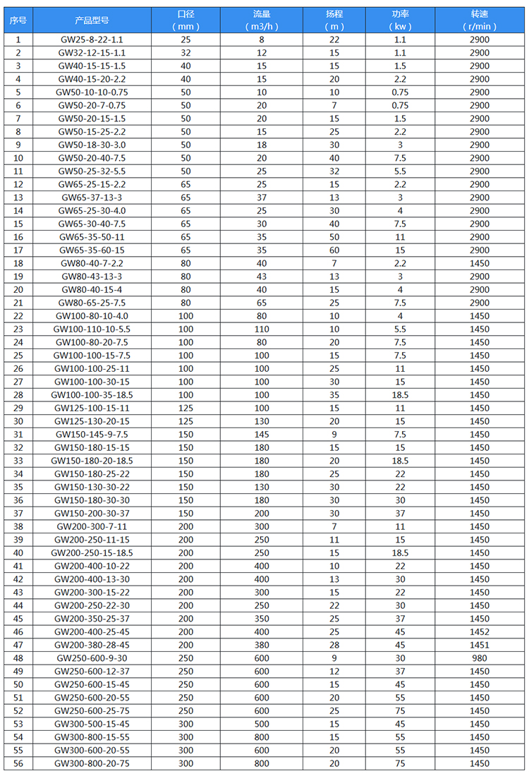 GW 型管道式無堵塞排污泵適用于工廠商業嚴重污染廢水的排放、住宅區的污水排污站、城市污水處理廠排水系統、人防系統排水站、自來水廠的給水設備,醫院、賓館 的污水排放、市政工程建筑工地、勘探、礦山配套附機、農村沼氣池、農田灌溉等行業,輸送帶顆粒的污水、污物,也可用于清水及帶弱腐蝕性介質。