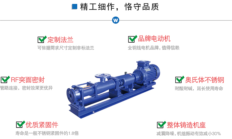 工作原理:?jiǎn)温輻U泵是一種內(nèi)嚙合回轉(zhuǎn)式容積泵,主要工作部件是偏心螺桿(轉(zhuǎn)子)和固定的襯套(定子),由于轉(zhuǎn)子、定子的特殊幾合形狀,分別形成數(shù)個(gè)單獨(dú)的密封容腔,轉(zhuǎn)子的運(yùn)轉(zhuǎn),將各個(gè)密封腔內(nèi)的介質(zhì)連續(xù)地、勻速地、容積不變地從吸入端輸送到壓出端。